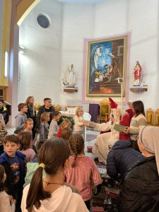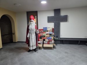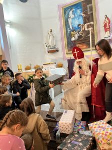 Nach dem Gottesdienst um 17:40 Uhr erschien der heilige Nikolaus, um die Geschenke aus dem Sauerland an die Gemeindekinder in Odzak (Osnovna Skola, Symbol Lebkuchenmann) von Pfarrer Ilija zu verteilen. Der Andrang war riesig und die Kinder ganz aus dem Häuschen, denn von dieser Überraschung wussten sie noch nichts.